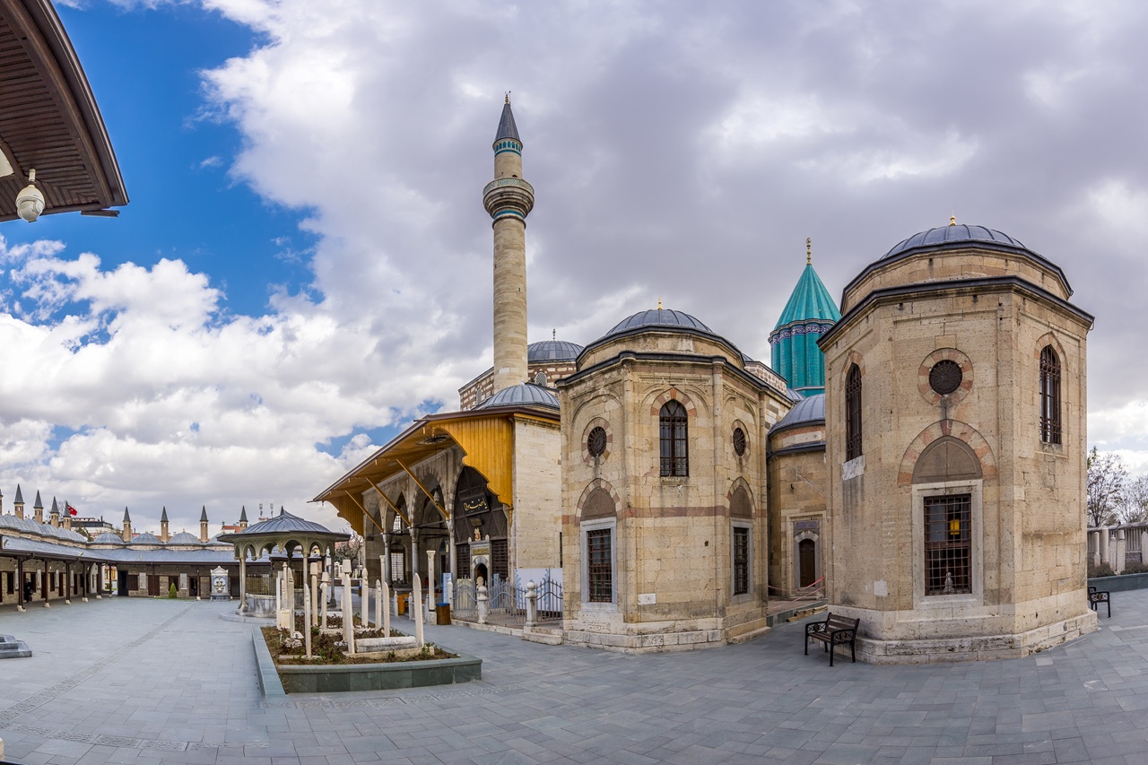If you opt for the Hot Air Balloon Ride, you will be picked up from your hotel at 5:30 AM and transferred to the launch site. The balloon flight lasts approximately one hour, concluding around 7:30 AM, after which you will return to your hotel for breakfast and some rest. At 9:30 AM, your Northern Cappadocia tour begins. Your first stop is a panoramic viewpoint overlooking Göreme, where you will admire Uçhisar Castle. Next, you will visit the Göreme Open-Air Museum, a UNESCO World Heritage site famed for its ancient rock-cut churches and frescoes. Lunch will be served in the charming town of Avanos, where you will also experience a traditional kick-wheel pottery demonstration and have the opportunity to try your hand at this ancient craft. On the return journey, you will pause at several scenic photo spots, including the village of Çavuşin, the animal-shaped rock formations of Devrent Valley, the mushroom-shaped fairy chimneys of Paşabağ (Monks Valley), and St. Simeon’s monk cell. After the tour, you will be transferred to the bus station for a scenic three-hour journey to Konya. Upon arrival, you will be taken to your hotel in the city center, where you can enjoy free time and an overnight stay.